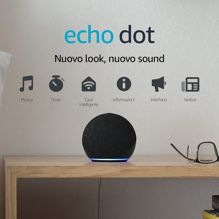 Ti presentiamo il nuovo Echo Dot - Il nostro altoparlante intelligente con Alexa più venduto. Dal design sobrio e compatto, questo dispositivo offre un suono ricco, con voci nitide e bassi bilanciati.