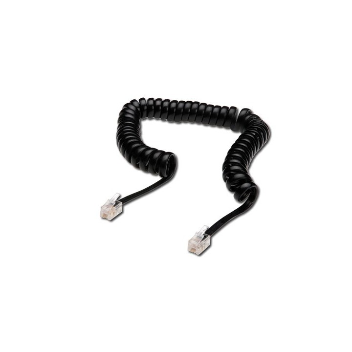 Cavi per la cornetta del telefono, sezione 4x7x0,12mm, non schermati, cavo piatto a spirale 4 poli. Connettori plug RJ10, 4P4C maschio/maschio. Lunghezza del cavo a spirale Cm. 30 |