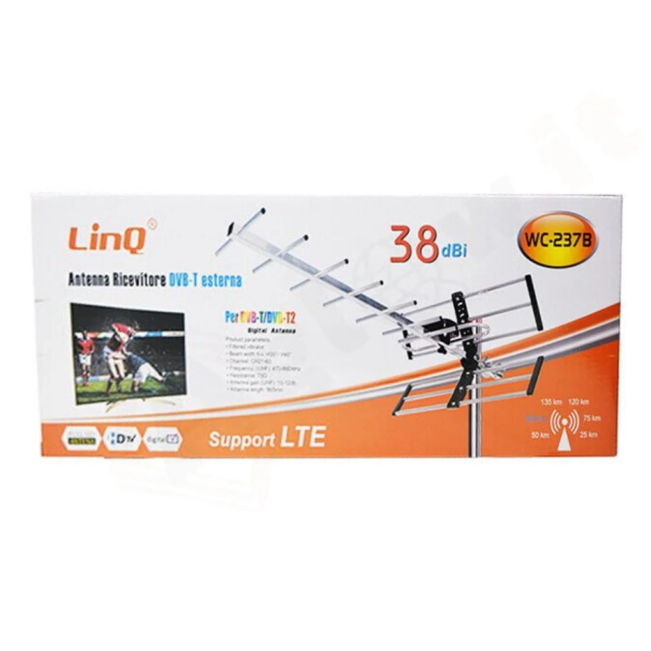 Antenna TV Esterna 38dbi DVB-T2 WC-237B, Antenna Amplificazione 38 Db per aree a ricezione debole, Antenna adatta per canali DVB-T2, HDTV LTE, Antenna Esterna per digitale terrestre